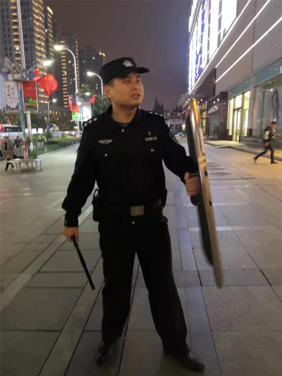 2019年10月9日樊城區(qū)公安分局內(nèi)保大隊(duì)陳鵬隊(duì)長依然堅(jiān)守不放松“不忘初心、牢記使命”主題教育活動,并組織樊城區(qū)漢江派出所民警和戎安保安服務(wù)有限公司保安隊(duì)員,在樊城區(qū)人員密集場所開展義務(wù)巡邏。